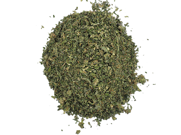 Ground flower and leaf with small pieces of bud. Easy to roll and smoke.